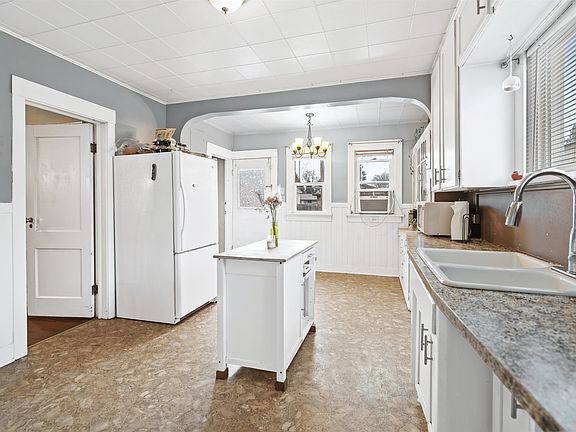 Charming Northtown residence! This home boasts a bright and airy ambiance complemented by charming vintage elements. It features a spacious living room, a delightful kitchen with a wooden island adding extra countertop space, three bedrooms, and one bathroom. The partially finished basement includes laundry facilities and ample storage room. Enjoy the pleasant back deck and the level fenced backyard with a storage shed. New roof installed in 2022. Don't miss this incredibly charming home!