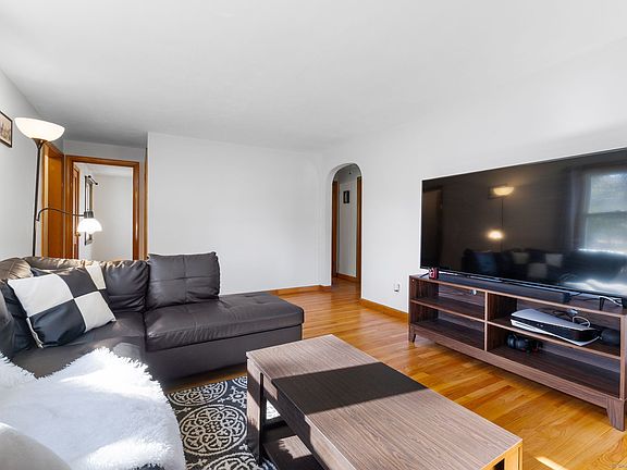 Charming 3-4 bedroom Cape in a desirable neighborhood offering a flexible floor plan to fit your needs. The eat-in kitchen opens to a dining room or possible 4th bedroom with a large pantry/closet. Enjoy a sun-filled living room with modern finishes and hardwood floors throughout. The first-floor bedroom adds convenience, while the spacious primary bedroom upstairs offers ample closet space and an updated full bath with quartz countertop.Classic arched doorways and craftsman-style details highlight the home's character. The oversized detached garage features storage, a workbench, and a covered stone patio for relaxing outdoors. Easy highway access, close to shopping, and walking distance to Southwest Park. Move-in ready and full of charm!