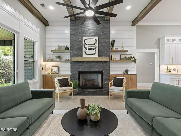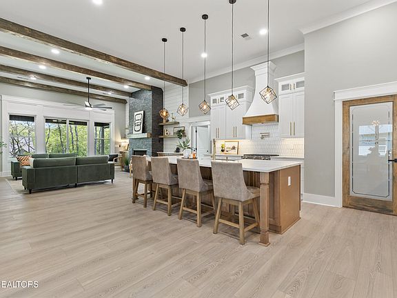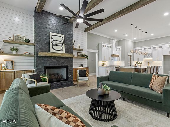 Location Location Location - BETTER than NEW - Discover refined living in this all-brick, custom new build in Toqua Coves—Tellico Village's most desirable enclave. Offering 3 bedrooms plus a private office, 2 baths, and a 3-car garage across 2,350 SF, this single-level home blends timeless craftsmanship with modern luxury. Soaring 12' ceilings, an open concept layout, and a striking stone fireplace define the main living space. The chef's kitchen impresses with quartz counters, massive island, soft close tall cabinetry accented with crown molding and includes premium KitchenAid appliances, pot filler, beverage cooler and walk-in pantry. The primary suite is a serene retreat with beamed tray ceiling, spa-style bath, and heated porcelain floors. Outdoor living shines with a covered stamped-concrete porch ready for year-round enjoyment. EV-ready garage with pet wash, full irrigation, and zero-step access complete this move-in-ready gem. Current homeowners love the home, but are relocating nearby to accommodate extended family needs. Enjoy golf, lake recreation, and vibrant community living in beautiful Tellico Village.