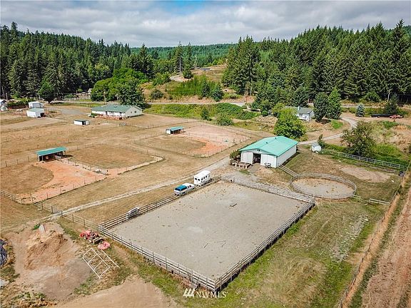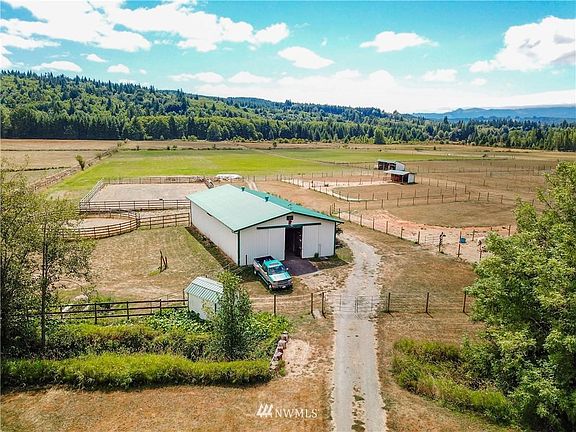 Equestrians Dream! This 3 BR 1.75 BA 1400 sqft home is the hub of this well appointed horse ranch. Hardy plank siding, brick fireplace, and vaulted ceilings in the great room style living space. Enjoy the valley view from the expansive back deck. View features an 11 stall barn (12x12 adjustable stalls with Kentucky floors), tack room with power & hot/cold water, 2 double stall & one triple stall mud managed paddocks with kiwi fencing, a mud free round pen and 60x120 mud free arena (excellent footing), hay field (2020 yielded 364 bales), 13.8 usable acres for your horses specific needs. French drains around house and arena to protect footing. High Speed Internet.