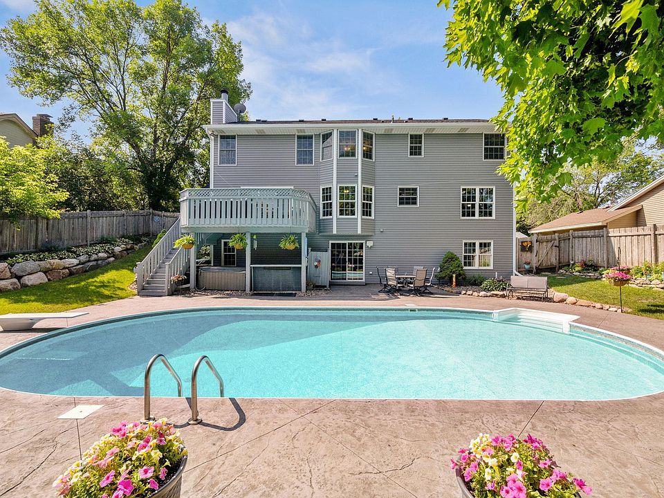 Welcome to this immaculate 2-story home, boasting a single owner's care and attention. The classic main level design is enhanced by a 3-stall garage and a spacious deck, perfect for gatherings. A versatile flex room adds to the allure of the main level. Journey upstairs to find 5 spacious bedrooms, and 2 bathrooms. The finished walkout lower level features an additional bedroom, bathroom, and large family room. Outside, the tranquil backyard oasis awaits, featuring an underground pool and stunning landscaping. Nestled within the Apple Valley school district, this home offers convenience with its proximity to parks, trails, shopping, and dining, all while enjoying easy freeway access. Agents and buyers to verify all data and measurements.