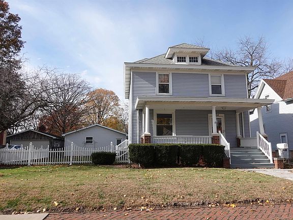 Warm and Inviting 3 Bedroom Home filled with Charm and Character. Covered front porch will shelter arriving guests and family from the elements while providing the perfect spot for casual conversation. Interior entry features natural wood work, beautiful wood staircase, and columns providing a nice entry to the formal living room offering great space for entertaining. Dining room is open to the living room and also provides easy access to the kitchen making gatherings at your home a breeze. Kitchen includes all the appliances, stone counter surfaces, tile backsplash, pantry, plus back deck entry. Main floor also offers a convenient step saving water closet. 2nd level features three bedrooms all offering nice space and served by hall bathroom. Additional storage offered with your walk-up attic. Basement of your home includes enough space for laundry, recreation, hobbies, and storage. Low maintenance vinyl exterior, front porch and rear deck, 24x32 detached garage with workshop, garden shed and fenced backyard. Home is conveniently located to shopping, restaurants, recreation, and schools. Most recent improvements to the home include the furnace 2024, and garage roof 2025. Call today to view this wonderful home.