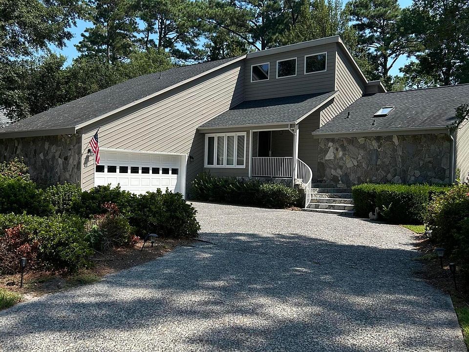 Beautiful home in Brandywine! As you approach, the circular aggregate driveway welcomes you. The exterior features elegant stone veneer and an attached two-car garage with beautiful epoxied floors.. Inside, you can either step down into the main living area or ascend to the loft and bedrooms. The living space boasts a beautiful wood cathedral ceiling and a cozy gas fireplace, perfect for relaxation. The kitchen is equipped with granite countertops, a built-in island, soft-close cabinets and drawers, huge pantry, pull out shelves and much more! Coming into the house from the garage checkout the large utility room. The first floor principal suite is spacious, with cathedral ceiling and French doors leading to the outdoor deck. The heated tile floors in the principal bathroom add a luxurious touch along with a tiled walk in shower and granite, double sinks. The dining room opens up to a generous screened porch, ideal for enjoying your afternoon downtime or morning coffee. Upstairs, you'll find two bedrooms connected by a Jack and Jill bathroom and a walk in attic.