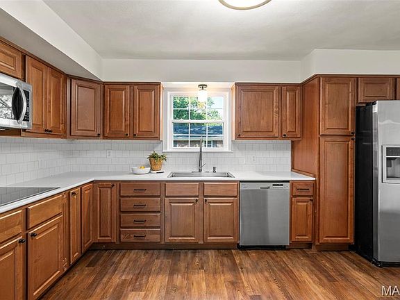 Nestled on a corner lot in a tree-lined neighborhood, this classic and inviting O’Fallon home offers timeless charm with modern updates. Boasting 4 bedrooms and 2½ baths across approximately 2,350 sq ft, the open main level features a large living room, a large office, and a huge kitchen with beautiful cabinetry, counters and appliances. There is a cozy and stylish hearth room/ breakfast room adjacent to the kitchen. Upstairs, you’ll find four generous bedrooms, all with easy care floors, ceiling fans, and neutral paint. The primary suite includes a private bath with a walk-in shower. There are plenty of outdoor possibilities on this spacious lot, and you will love the covered front porch. Upgrades and updates are too many to mention here. Located in O’Fallon’s highly regarded school district and close to shopping, dining, and Scott Air Force Base, this move-in ready gem offers the perfect combination of style, function, and convenience. Hurry!
