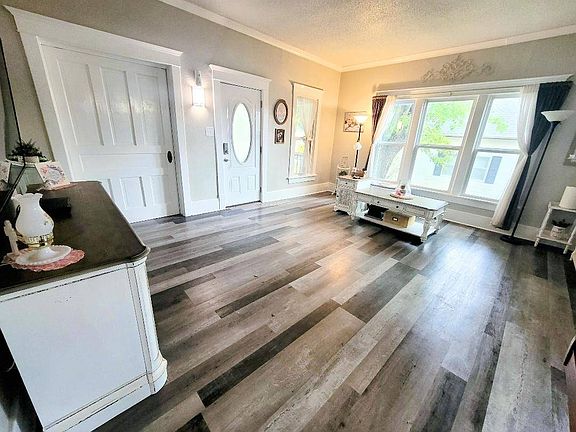 What a beautiful welcoming front wrap around porch on this thoughtfully remodeled, from top to bottom, 2 story home. This home seamlessly blends original character with modern updates. Abundant natural light floods the down stairs living spaces through large plentiful newer windows. The main floor includes a large living room that flows into a dining area that is equally as large with new laminate flooring. Off the living room is currently a room used as an office (could be an bedroom with a closet), and a second bedroom that has access to the bathroom. The kitchen has an abundant amount of white painted cabinetry, large gas stove with exhausted hood, newer stainless refrigerator and dishwasher. The main bathroom is off the kitchen as is the large laundry room with storage. Washer, dryer, and deep freeze will remain with the home. Another room off the kitchen currently being used as a family room/office could be considered a bedroom. A wide stair case leads to the upper level that contains 3 more bedrooms and a full bathroom. Also, a newer HVAC unit supplies this level. 2 large bedrooms with closets galore including a large walk in, both with large windows, original hardwood floors, and crown molding. The 3rd bedroom is smaller but plenty of room and could be used for many different ideas. All wall mounted TV will stay. An unfinished basement houses the utilities with interior and exterior access. The backyard is shaded by 2 large trees with a 6' privacy fence. An oversize shed and dog pen complete the backyard that has alley access. This home is a must see with many more desirable features for todays real estate market. Listed @ $259,000.