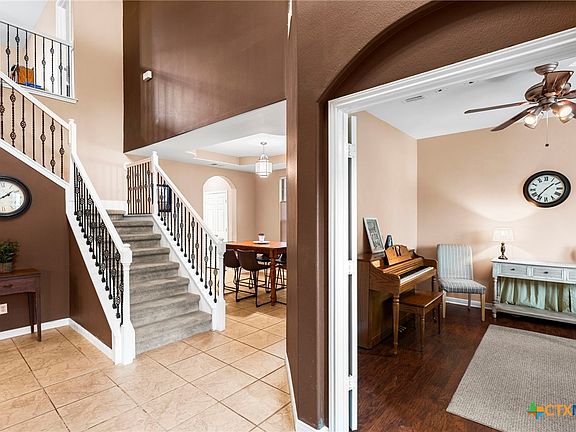 Located just steps from Buda's vibrant parks, farmers market, hike and bike trails, restaurants, shops, and community events, this exceptional home offers the perfect blend of charm, space, and modern comfort. Step inside to a grand, light-filled foyer with soaring 20-foot ceilings, setting the tone for the expansive layout. The thoughtfully designed floor plan features four spacious bedrooms—all with large walk-in closets—plus an upstairs flex room, dedicated first-floor office, formal dining room, and walk-in laundry room. The luxurious primary suite includes vaulted ceilings, a cozy sitting area, and ample space to relax and unwind. The chef's kitchen is equipped with double ovens, stainless steel appliances, and two pantries for maximum storage. Enjoy Texas living at its finest in the backyard oasis, complete with a custom swimming pool, oversized hot tub, screened-in porch, deck, and outdoor shower with both hot and cold water. The beautifully xeriscaped front and back yards add both curb appeal and easy maintenance. Additional highlights include insulated garage doors, a garage workbench with space for a refrigerator, a setup for a wall-mounted AC unit, abundant storage throughout—including walk-in coat and linen closets—and recently replaced HVAC systems for peace of mind. This one-of-a-kind property is a rare gem in one of Buda’s most sought-after locations. Seller offering $20,000 paint and flooring bonus to truly make this special house the buyer’s dream home.