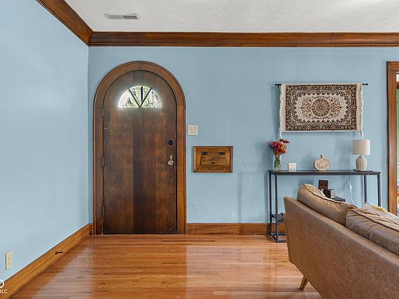 Be Prepared to Fall in Love with Historic Irvington! Step into this stunning early 20th-century home that perfectly blends classic charm with modern comfort. The main level features beautiful hardwood floors and elegant crown molding creating a warm and inviting atmosphere. Start your mornings in the bright sunroom with a cup of coffee, or unwind in the evenings on the back patio with a favorite drink. Entertain family and friends in the basement theatre, perfect for hosting movie nights or game nights. This home offers 4 spacious bedrooms and 2 full bathrooms, along with a well-appointed kitchen designed for everyday living. Parking is a breeze with a two-car detached garage, driveway, and plenty of street parking. Located just a short walk from all that Irvington has to offer, including annual celebrations, the scenic Pennsy Trail, Ellenberger Park, local restaurants, boutique shopping, and the Irvington Historical Society, this home combines historic charm with unbeatable convenience. Don't miss your chance to own a piece of Irvington history.