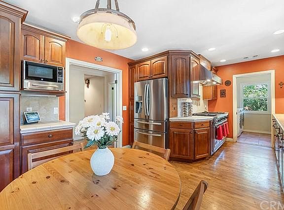 This spectacular mission style home nestled in the heart of San Dimas is ready for a new owner! This home is beautifully situated on a quiet corner lot, walking distance from the downtown San Dimas. This is a throw back neighborhood. This home is nestled amongst Craftsman styled properties and other vintage homes in a neighborhood where people sit out on their front porch ready to greet their neighbors. As you approach this property it is easy to see this is a home unlike any other. The beautiful front yard welcomes you. Enter this home you will be transported to your own private oasis. The stunning Spanish style tile transports you from throughout the home. The chefs kitchen beckons any cook to create the day's masterpiece. The kitchen appliances are professional grade and the kitchen cabinetry is custom designed. The formal dining room is elegantly appointed with coved ceilings and recessed lighting. The dining room is the perfect place to make special memories with family and friends.This formal space opens gracefully onto the living room. The living room is outfitted with the understated elegance of arched windows and classic beauty of the honed wood beamed ceilings. The space is complete with a cozy fireplace ornamented with Spanish tile. The primary bedroom is generously sized and the stunning en suite bath is sophisticatedly styled with rough stone finishes, a Moorish style vanity with brass accents, and elegant shelving inset into a beautiful arched niche. The secondary bedrooms are very well appointed. This property boasts a showcase backyard! The grass area and paved spaces stylishly meld together under the shade of the mature trees creating an outdoor wonderland. The alfresco dining areas, and strung lights, the outdoor fire place, the spa and out door shower, as well as the private hide away bar and powder room make this space truly one of a kind. The proximity to the 210, the 57, and the 60 freeways make this location a commuter's dream. Hurry to schedule an appointment to see this spectacular property; it will not last!
