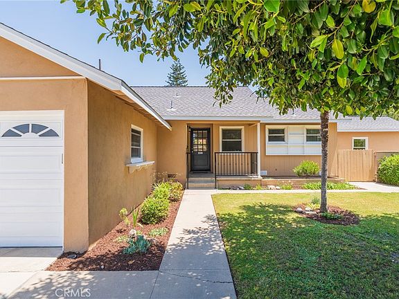 Welcome to 404 N. Pear Knoll, Anaheim! Discover the charm of a home with a story to tell in a coveted cul-de-sac where neighbors tend to stay for years. This lovely single-story residence, owned by the same family since 1970, offers 1763 sq ft of living space on a generous 10,600 sq ft lot. Imagine the possibilities for creating your own happy memories in this home! Step inside to a formal entry that opens to a custom kitchen featuring rich mahogany cabinets and a breakfast nook. Adjacent to the kitchen, you'll find a convenient indoor laundry room and a half guest bath with exterior access. The spacious layout is perfect for entertaining, with a great room combining the living room and formal dining room, and a huge bonus room (approx. 300 sq ft) offering flexible space. This home also features three bedrooms and three bathrooms, including a true primary suite with a private ensuite bathroom, a giant soaking tub, and a humongous walk-in closet. Upgrades over the years include a new roof, dual-pane windows, central air conditioning, recent interior and exterior paint, and newly polished oak floors. Outside, enjoy mature shade trees, blissful gardens, a sprawling lawn, and an oversized driveway with RV parking. A lovely front porch provides the perfect spot for sunset viewing.