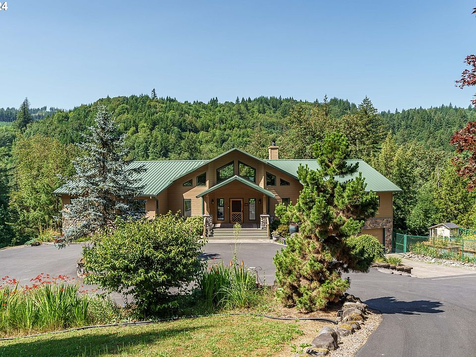 OPEN HOUSE SUNDAY 12-2! This stunning riverfront estate offers the allure of perpetual vacation living! Situated on nearly six meticulously landscaped acres with 200 feet of Washougal River frontage, it epitomizes the essence of Northwest living. Architecturally exquisite, the post and beam construction boasts 3568sqft of meticulously designed living space, affording panoramic views from nearly every room. Sunlit interiors feature custom oak flooring with intricate inlays, while the expansive great room, adorned with floor-to-ceiling windows and a river rock fireplace, exudes warmth and tranquility. A charming loft provides additional vistas, while the gourmet kitchen, equipped with stone countertops and high-end Jen Air appliances, is a culinary haven. The main floor encompasses 2763sqft, including a primary suite with a private deck, jacuzzi tub, and walk-in closet, alongside three guest bedrooms. Ziply Fiber Optic internet for those that work from home! The daylight basement, with separate entrances, offers versatility and includes a kitchenette and bar for entertaining. Could easily flext to a MIL suite! A new Trex Deck overlooks the river, complementing the meticulously landscaped grounds, complete with a spring-fed creek, orchard, raised beds, and greenhouse. Conveniently located, yet secluded, this estate offers country living mere minutes from major amenities. Brand new well pump, brand new holding tanks. Perfect septic system and well pressure. New Heat Pump! Enjoy outdoor gatherings around the firepit, or venture to the expansive grassland abutting the river for larger events. Experience the ultimate in riverside living, with fishing and recreation at your doorstep. Don't miss the captivating video tour showcasing all this property has to offer. Click on the video tour and prepare to be mezmorized!