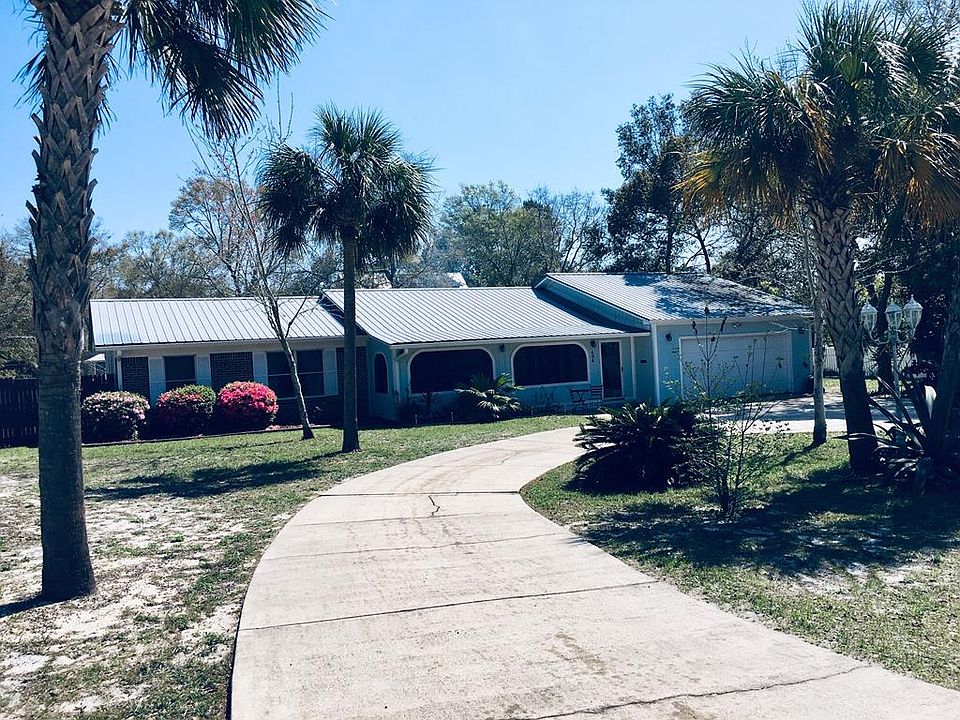 Coastal Beauty with a large yard for boat storage & room for a pool! Within two blocks of the harbor and its marinas, boat launches, restaurants and shops, this house is in a great area. Less than a five minute drive to the public beach! The house features a circular driveway, the cutest screened front porch for entertaining and an open concept floor plan. The garage is over sized and can easily hold two cars with room left over for kayaks, fishing equipment, lawn tools and beach equipment. There is a great deck off the kitchen for cookouts and a large backyard for boats and even to add a pool if you like. It is all enclosed with a wooden privacy fence. All hard surface floors for easy cleaning after the beach and all on a quiet street that goes down to the beautiful Carrabelle River. Check this pretty & comfortable house out.