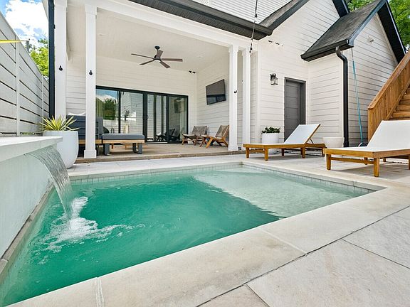 Welcome to this five-bedroom, brand new oasis in Downtown Bentonville! Truly the ultimate place to spend a weekend, this home offers luxury amenities and plenty of living space for 16 people between the main house and guest house. Unwind on the gorgeous private outdoor patio with plunge pool, TV, and lounge seating, cook a meal in one of the two state-of-the-art kitchens, or cuddle up for a movie on the sofa in any of the three living spaces.