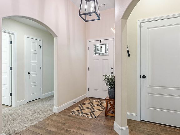 The primary suite offers plenty of space to unwind, complete with a luxurious en-suite featuring dual vanities, walk-in shower, soaking tub and a large walk-in closet that connects conveniently to the utility room. Across the split floor plan, you’ll find two generously sized guest bedrooms and a full guest bath.