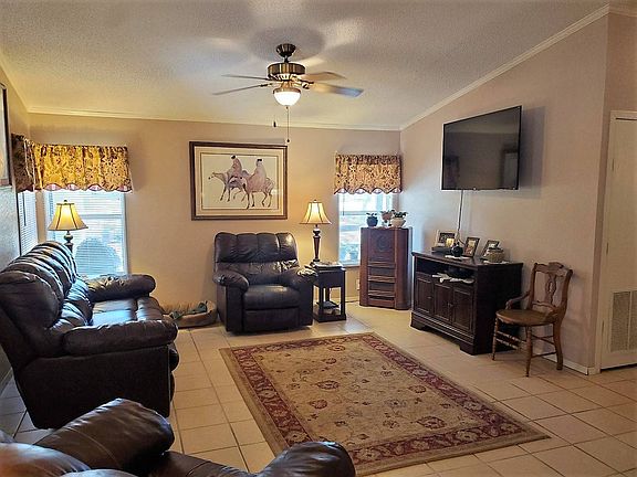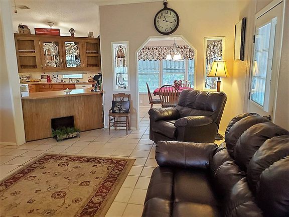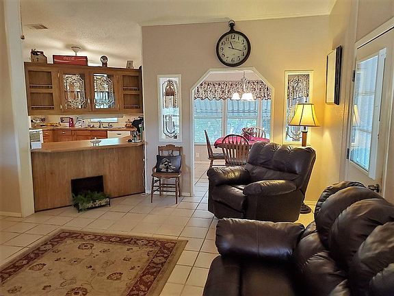 Come take a look at this incredible value in Ingram Oaks adult community. This 3/2 offers a formal living room, separate den,dining room and sunny breakfast nook. No carpet to vacuum ! Located on the perimeter of the park with private backyard views, a large deck for friends, an attached two car garage and workshop its hard to beat! Ingram Oaks is an over 55 community you purchase the home and pay a park rent fee of $375 monthly this includes curbside garbage pick up twice a week, septic, maintenance of the common areas as well as use of the pool and private river park for residents on Ingram Lake.