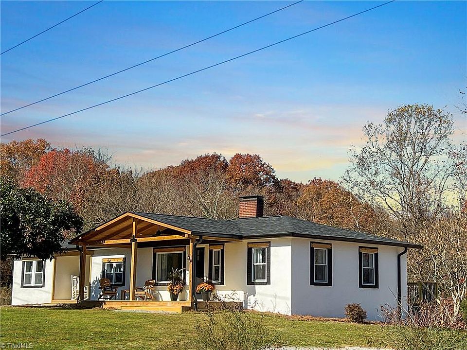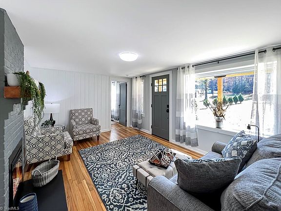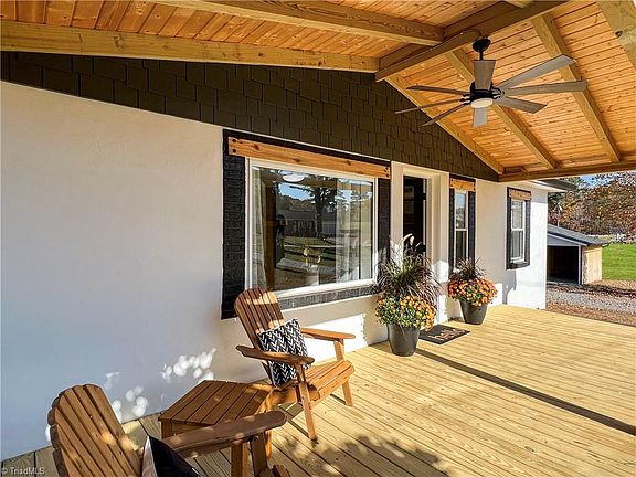 Come home to this completely renovated home tucked in on a quiet country road yet only a mile from Hwy 421. Wood flooring throughout, with tile flooring in the primary bath and laundry room. This home boosts an open gable front porch for relaxing, open rear porch, and a private covered porch accessed from the primary wing to enjoy your morning coffee while admiring the large level yard! Completely new kitchen packed with soft close cabinetry, open shelving, granite countertops, and a floor to ceiling herringbone tile backsplash, plus new stainless appliance package. Come in from the 2 car detached carport through the well positioned mudroom. Full walk-out basement with 2 additional rooms for flex space as well as unfinished space for storage. Owners have paid attention to every detail in this wonderful home.