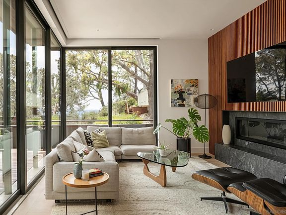 Welcome to 404 Pine Needles Drive — a stunning mid-century modern retreat with panoramic ocean views, fully remodeled in 2022 and tucked within one of Del Mar’s most exclusive and private neighborhoods. Set on a spacious 0.33-acre lot, the property offers room to build an ADU, adding even more potential to this exceptional home. Step through the lushly landscaped front yard and ascend to the main level, where natural light, warm white walls, wood accents, and curated designer lighting welcome you in. The open-concept dining and living areas seamlessly flow onto the expansive ocean-view deck through disappearing glass doors, creating an ideal setting for indoor-outdoor living and entertaining. The gourmet kitchen is a chef’s dream—featuring a large island, multiple prep zones, and top-of-the-line appliances. Just beyond, a casual dining nook opens into a versatile recreation space, currently set up as a pool table and bar area. A disappearing partition allows you to close off the space for added privacy. Off the kitchen, a second outdoor lounge with a fire pit and built-in barbecue offers a serene, ultra-private escape, while another side patio leads to a convenient storage room. A stylish powder room completes the main level. The primary suite is a true sanctuary, complete with custom drapery and motorized blinds, sweeping ocean views, a spacious rooftop deck, spa-like bathroom with soaking tub and walk-in shower, and an expansive custom walk-in closet. Two guest bedrooms share a Jack and Jill bath, each with its own sink and toilet for added privacy. See supplement... Two guest bedrooms share a Jack and Jill bath, each with its own sink and toilet for added privacy. One of the bedrooms includes a bonus space, perfect as an office or nursery. Both bedrooms open to a large outdoor terrace—ideal for children or pets to enjoy safely. The lower level includes an additional guest bedroom, full bath, and a bonus room currently used as a wine cellar and home gym. A large laundry room with built-in storage and the home’s elevator round out the level. The oversized two-car garage and private driveway offer generous parking and storage. This is more than a home—it’s a work of art. Located just minutes from iconic Del Mar beaches, Torrey Pines State Reserve, Del Mar Village, the Del Mar Racetrack, and top-rated schools, with easy access to I-5 and nearby shopping.