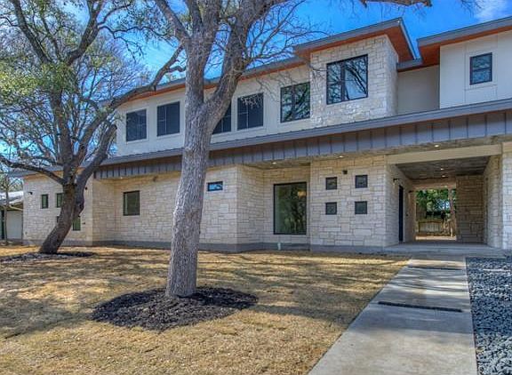 Central Texas Modern, Site-Driven Architecture w/Over a dozen Oak trees, 5-panel Recessing Glass Wall, detached Guest House, Formals, Media w/Wet Bar & 92 inch Movie Screen/Projector, 3 Full Kitchens, Master Suite w/Steam Sauna & Soaking Tub, Foyer, Mudroom, Reading Room w/Built-in Bookcases, Screened Porch, Office w/2 built-in Desks, Marble Bathrooms throughout, Porcelain Tile Down & Wood Flooring Up, Over 1,600 SF of exterior living in 4 separate areas, Whole House Audio, Surround Sound & Security