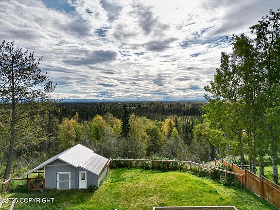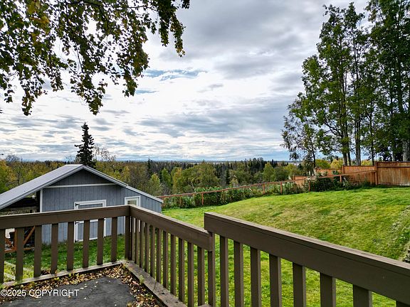 Enjoy mountain and valley views with a peek at the Kenai River right from your home! The upstairs living room features vaulted ceilings, a cozy gas fireplace, and access to a deck made for soaking in the scenery. The spacious primary suite captures the same views, and recent updates include fresh paint and LVP flooring. Downstairs, a finished walk-out basement offers a comfortable family room anda generous laundry room, giving you plenty of space for everyday living. The large fenced backyard includes raspberry and strawberry beds plus a storage shed. Backing to public land, you'll have room to explore and watch Alaska's wildlife right out your door. All this while being tucked away in a quiet setting - just a short walk to schools, ball fields, and the golf course, and only minutes to grocery shopping. Truly the best of both worlds! HOT TUB STAYS WITH FULL PRICE OFFER!!!