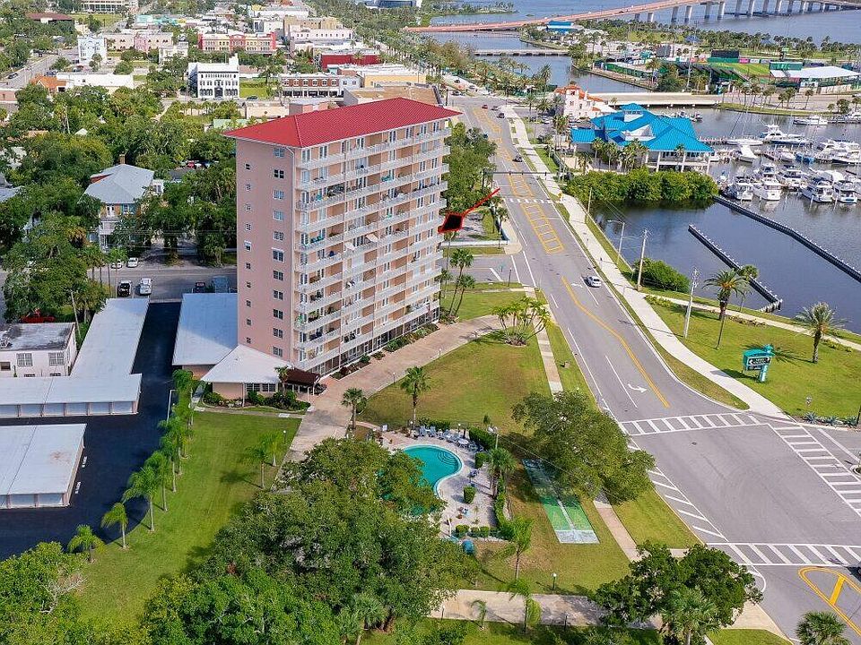 WELCOME TO YOUR DREAM HOME IN THE SKY at a NEW LOWER PRICE and a BRAND NEW A/C! Owner is willing to hold the mortgage or consider lease-to-own options. This beautifully redesigned & minimally used 7th-floor END UNIT offers breathtaking panoramic views & high-end upgrades. Fully renovated in 2020, everything is new from the drywall & insulation to plumbing, wiring, & electrical panel, water heater and all appliances. Step inside to discover French doors, tile flooring, crown molding, no popcorn ceilings, high-end cabinetry & granite countertops in a spacious, gourmet kitchen & both bathrooms, new windows (except 2 newer windows on N wall). Enjoy sweeping, unobstructed views of marinas, Intracoastal Waterway, stunning sunrises & sunsets, fireworks from Jackie Robinson Ballpark, rocket launches from the coast. This unit includes a one-car detached garage w additional parking available in front of the condo & behind garage building #3. Recently completed improvements: new roof on both condo & garages, concrete restoration, fresh paint, new elevators, new balconies & railings, re-lined plumbing. Located within walking distance to Riverfront Esplanade, shops, restaurants, museums, & Jackie Robinson Ballpark. Private pool. Cats allowed. No dogs except certified service animals.
