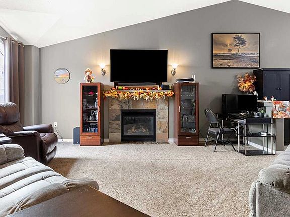 This beautifully designed 1,400 sq. ft. bi-level, built by Serenity Homes, sits on a quiet cul-de-sac and offers an impressive blend of quality, functionality, and modern comfort. Step inside and be greeted by vaulted ceilings and a bright, open layout. The kitchen showcases granite countertops, maple cabinetry, tiled backsplash, corner pantry, and a large island overlooking the dining area. The living room features a cozy gas fireplace, while the primary suite includes deck access, a 4-piece ensuite with double sinks, shower, and walk-in closet. Two additional bedrooms, main-floor laundry, and a second 4-piece bathroom complete the upper level - a highly popular layout for families that balances comfort and convenience. The professionally developed basement (2019) is perfect for growing families - featuring a massive family room, two spacious bedrooms, and a full 4-piece bathroom. Large windows flood the space with natural light, creating a warm and inviting atmosphere ideal for entertaining or relaxing. Outside, enjoy the fully fenced and landscaped yard with underground sprinklers front and back (including the garden), a maintenance-free covered deck, patio with firepit area (blocks for fireplace are stored under deck), and hot tub. The 23 × 24 attached garage is insulated, plumbed for heat, and paved triple car driveway out front! Oversized RV parking is available in the backyard OR there's a smaller area in the front driveway that could be utilized. Even better - the thermostat, door locks, and garage doors can all be controlled remotely via app, offering convenience and peace of mind. Recent updates include shingles replaced in 2021, paved driveway, adding to the home’s already strong pride of ownership. Perfectly located across from a walking path with river/coulee views, this property delivers space, serenity, and smart living - all in one incredible Redcliff location.