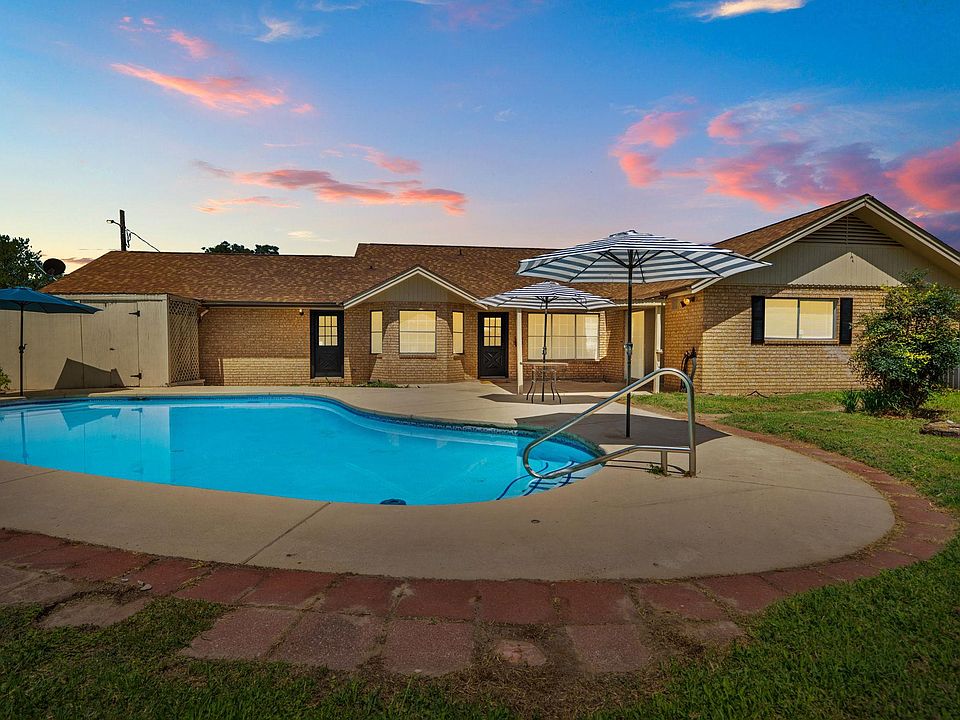 Welcome to 404 S Joekel Ave in Giddings, TX—a laid-back corner-lot home with vintage soul and space to stretch out. Tucked into a quiet block with a total of 3 houses and no one right next door, this home feels private without feeling isolated. The circle driveway out front (plus a traditional drive on the side) makes it easy to welcome friends over or come home without the parking shuffle. Inside, it’s got that chill, comfortable flow—vaulted ceilings with exposed beams, built-ins for books or board games, and a kitchen pass-through with original wood shutters that’s straight out of a slower, simpler time. The kitchen is roomy and full of character, with a breakfast nook that’s made for Sunday mornings and coffee refills. And when it’s time to hang out? That backyard delivers. A covered patio for grilling, a private pool for lazy afternoons or impromptu night swims, and just enough yard to let your dog run or your people gather. This place isn’t flashy, but it’s the kind of home that feels good the moment you walk in. Whether you’re hosting game night, floating in the pool, or just curled up with a good book—it’s got space for all of it. Oh—and the roof? Brand new as of June 2024. If you’re craving charm, privacy, and room to live life your way (without the cookie-cutter feel), this Giddings spot is worth checking out.