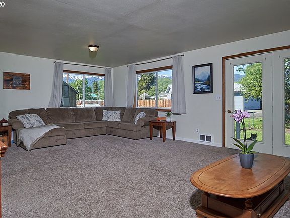 Charming Dutch Colonial house in Enterprise with the City Park as an extended playground and a small stream flowing across the front yard. This quaint and cozy 3 bedroom 1.5 bath home has many new updates on the interior and exterior. Enjoy the mountain views from the living room or the large back yard. Deer love it, too! Romantic fireplace in master bedroom and stylish pellet stove in the dining/bonus room. All three bedrooms and full bath on the upper level. Storage shed included.