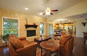 Stunning hill country views from very private back porch and patio with outdoor fire pit. Watch the sun set, sun rise and clouds roll by! Remodeled and Updated. Lovely floor plan with new flooring, remodeled Master bath with granite countertops, walk-in shower, custom cabinetry.Ladies vanity area in Master bath. House has been repainted and retextured inside/out, rounded corners, new windows. Third garage door for golf cart. Elfa closet sys. Low maintenance landscaping. Backs to San Gabriel river. Park,Jogging/Biking Path,Double Oven,Cook Top,Microwave Oven,Self Cleaning Oven,Updated A/C Unit (> 12 Seer),Vented Exhaust Fan,Water Heater Electric