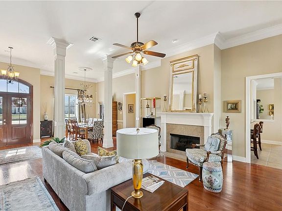 Well-maintained & updated, this 4-bedroom, 3-bath home in Covington’s sought-after Southdown subdivision offers exceptional comfort, privacy, and functionality. Major improvements include a post Ida roof replacement, a brand new 5-ton HVAC unit, and a second HVAC system only three years old delivers turnkey peace of mind. The thoughtfully planned layout features all bedrooms positioned off private hallways. The spacious, light-filled kitchen serves as the home’s central hub, complete with a large island, stainless steel appliances, pantry, abundant cabinetry, glass tile backsplash, under-cabinet lighting, breakfast area, and adjoining keeping room. A peninsula bar accommodates seating for three. Hardwood floors extend through the formal dining and great rooms and into the primary and guest suite. Plantation shutters throughout add timeless character. The primary suite features a tray ceiling with ambient lighting, a ceiling fan, dual sinks, vanity area, soaking tub, separate shower, linen closet, and a generous walk-in closet. Two bedrooms share a Jack and Jill bath with dual sinks, while the fourth bedroom is served by a full bath on the same hallway. A large upstairs bonus/game room provides excellent additional living space and convenient access to the floored attic. The laundry room includes a sink, cabinetry, and open shelving for efficient storage. Outdoor living is a highlight with a covered patio overlooking a charming sugar kettle fountain & lush landscaping that enhances privacy. Sprinkler system throughout yard, fenced backyard support low-maintenance enjoyment. A two-car garage and extended driveway provide ample parking. This home delivers a thoughtful blend of space, updates, and livability for everyday comfort and effortless entertaining.
