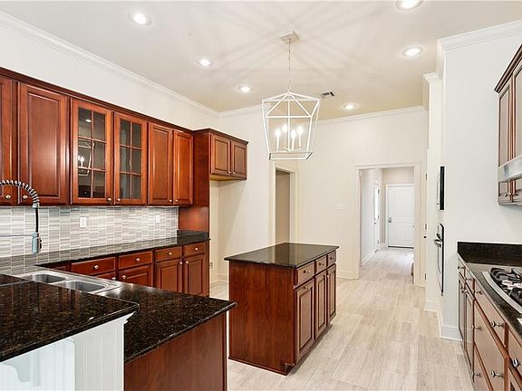 Abundant cabinetrySprinkler system throughout yardStainless steel appliancesGlass tile backsplashUnder-cabinet lightingSpacious light-filled kitchenLarge island