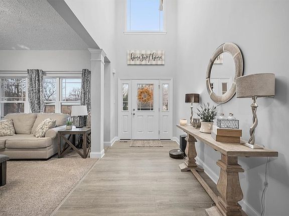 This stunning 4-year-old home sits on nearly 1 acre and offers the perfect blend of modern luxury and functional design. A large front porch welcomes you into a bright, open floor plan filled with natural light. The oversized family room boasts a dramatic 2-story stone fireplace and a wall of windows, seamlessly connecting to the dining area and gourmet kitchen. The kitchen features quartz countertops, a large island, stainless steel appliances, a tile backsplash, pantry, and hardwood floors. The first floor also includes a laundry/mudroom and half bath. Upstairs, the oversized master bedroom has a spa-like ensuite and walk-in closet, while bedrooms 2 and 3 each have their own private baths. The finished lower level offers a spacious game room and an in-law suite with a bedroom, bath, and kitchenette. Off the kitchen, enjoy the large covered deck overlooking the expansive yard. A 2-car garage completes this incredible home.