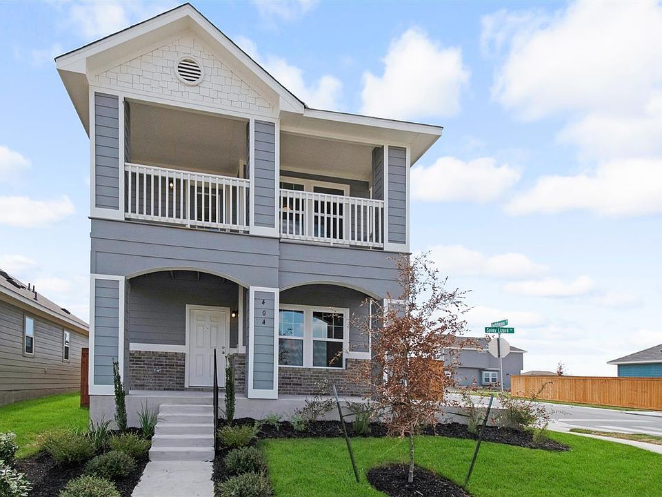 Welcome home to your adorable 2bd 2.5 bath home on a corner lot in the great community of Trace. This home offers a large living area, a designated dining area & a modern styled kitchen, creating an open concept that you can enjoy while you entertain. The inviting front porch is waiting for your special touch. With plenty of room to enjoy morning coffee, you will undoubtedly fall in love with this home! Inside, you will find your spacious breakfast area and enjoy a huge bay window while basking in the natural light, watching the children and birds play in the spacious backyard. Gather for feasts around the oversized peninsula island with plenty of room for barstools and more seating. Stainless steel appliances and quartz stone counters make preparing meals easy. Your guest will enjoy the bathroom downstairs next to the laundry room. Upstairs you will find the primary bedroom fit for a king, with a stand-up shower and a walk-in closet. The secondary bedroom across the hall is perfect for the kids or guests! With the full bathroom located in the hall, the coziness is plentiful! The upstairs balcony is perfect for taking in breezy evenings before calling it a day. NO CARPET! All flooring was replaced in early 2023 with vinyl plank flooring. With schools close by, and a superior outlet mall just minutes away, you will have it all with this property! For commuters to Austin, New Braunfels or San Antonio, this is a great location. The community offers a pool, playground, sand volleyball court, half basketball court, and a cabana with a sink, tables, and grills. Rodriguez Elementary sits in the center of the neighborhood with easy access to walk to school. Whether you're looking for a starter home as your primary residence, interested in an investment property, or a second home for your travels, this Craftsman has everything you need! Appliances include dishwasher, oven-stove, water softener system, and UV sanitizer system in AC! Roof replaced and fence stained in 2025!