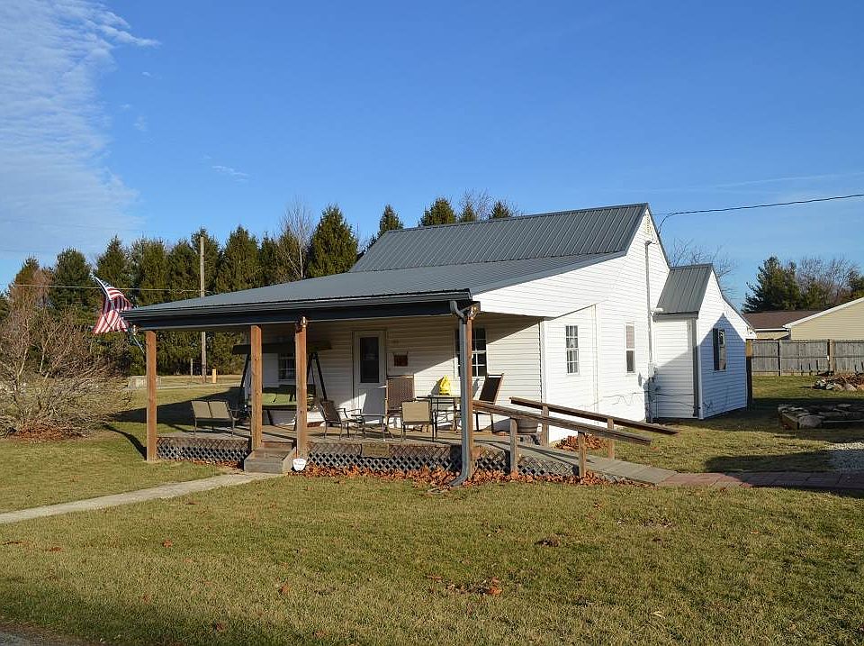 MOVE IN READY! 3 BEDROOM HOME ON LARGE CORNER LOT IN SHENANDOAH SCHOOLS! ENJOY YOUR EVENING ON COVERED FRONT PORCH BEFORE ENTERING INTO SPACIOUS LIVING AREA. EAT IN KITCHEN WITH PANTRY. LARGE LAUNDRY AREA WITH SHARED CLOSETS. BATH FEATURES WOOD V-CUT WALLS. METAL ROOF, 3 CAR DETACHED GARAGE, FENCED YARD AND FISH POND COMPLETE THE EXTERIOR! EASY ACCESS TO HIGHWAY, NEW CASTLE, ANDERSON, MUNCIE.