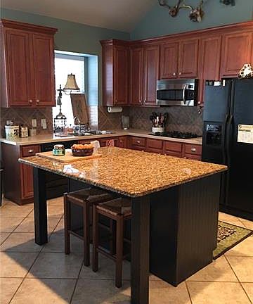 GORGEOUS!! Don't miss this beautifully maintained family home on over sized lot. This open concept home boasts renovated master bath, bay window in master, 3 ovens!, versatile floor plan, expanded island with granite counter top for bar stools, gorgeous cherry cabinets with glass doors, high ceilings, updates thru out! Water heater & AC unit less than 3 yrs old. Over sized back patio! Enjoy the community pool & fast access to I-35 and shopping.