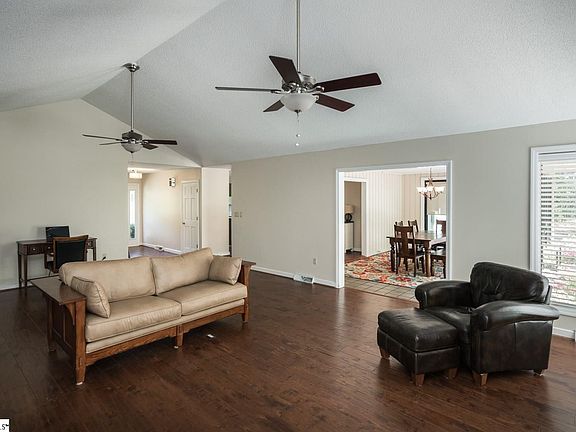 Updated Ranch on Greenville's Eastside off Pelham Rd and just minutes from I-85. The owners have taken great pride in the home by installing hardwoods throughout (except for a few areas) and renovating both the master bathroom, powder room and the secondary bathroom as well as the kitchen. The home boasts a very open floor plan with a vaulted Great Room complete with a gas fireplace with stone surround. You'll enjoy the spacious sunroom ideal for a dining space off of the kitchen and breakfast area. The master suite is very large and showcases a totally renovated bathroom with a tiled shower, soaking tub and vanity with two sinks and walk-in closet. There are two well sized bedrooms sharing a bathroom which has also been totally renovated. The laundry room is off of the kitchen and garage access. Don't miss the walk-up attic space over the rear-entry garage. There's boundless storage up there! Rounding out the home is mature landscaping on a half acre fully fenced lot with an in-ground sprinkler system and an outdoor patio. Don't let this special home slip away! Summerplace is conveniently located and zoned for award winning schools.