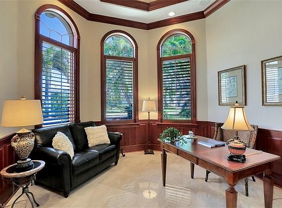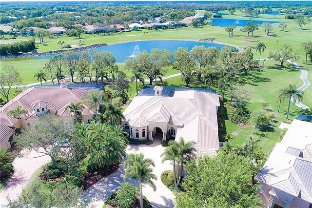 A MUST SEE TO APPRECIATE THE VALUE! Elegant, custom estate living in the prestigious neighborhood of Terracina. Located on the golf course and lake with Southwest exposure. This pristine family home includes four ensuite bedrooms plus a den. The master bedroom suite has a cozy fireplace, hardwood flooring, separate his and her bathrooms with custom designed walk in closets. This home features many upgrades including a newly installed full house auto start generator, granite countertops and custom cabinetry throughout, marble floors, tray ceilings, an oversized lanai, outdoor kitchen with a heated pool and spa...perfect private setting with lush landscaping on an oversized lot. Upon Entering through the solid mahogany door you will know you have arrived.... living room with a gas fireplace, inviting formal dining room and 12' Coffered ceilings with recessed lighting. Additional upgrades include newly installed 16 Seer Air Conditioning systems and a 85 gallon hot water heater, surround sound and intercom system throughout. Three car garage with a completely self- contained air conditioned safe room or workshop within the garage. This home is truly a one of a kind masterpiece!