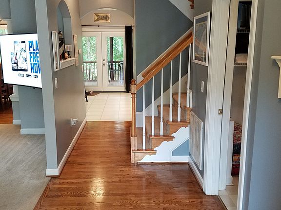 This home in Apex backs to foliage and sits in a cul de sac near retail shopping and casual dining, and has recently been renovated with fresh interior paint. The modern kitchen has granite countertops with stainless steel appliances and access to the raised, enclosed patio. Upstairs, the master suite has a walk-in closet and the attached bathroom includes dual sinks with a separate tub and shower.