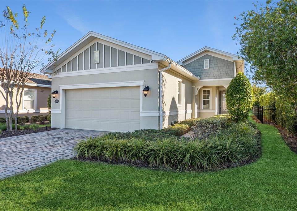 Expect to be impressed by this 2015 Kolter Azalea floorplan, offering a serene POND view & a 30’ x 21' screen enclosed covered lanai in the sought-after Cresswind at Victoria Gardens 55+ neighborhood. This Light & Bright 2 BD/ 2 BA home with a Den features a Great Room layout and numerous upgraded options to suit your lifestyle! The 14’ x 10’ kitchen is appointed with 42” light Ivory “soft close” cabinetry w/ crown molding, under cabinet lighting, pendant lighting above the breakfast bar, stainless steel appliances and a walk-in pantry. Neutral 18” ceramic tile floors throughout main living areas, complemented by recessed lighting and a decorative leaded glass front entry door. Primary bedroom includes 2 walk-in closets, tray ceiling and a en suite bathroom with double door entry, glass enclosed walk-in shower & separate vanities. Utility room provides a washer, electric dryer & a natural gas connection for future flexibility. Spacious garage is pre-plumbed for a future laundry tub. Victoria Garden residents have access to their own Private Clubhouse. HOA fee includes lawn care, Spectrum HFC TV & internet, and reclaimed water for yard irrigation. Community is within 1 mile of I-4 that offers great access to the east coast beaches, Orlando (40 minutes) and 3 International airports within 1 hour.