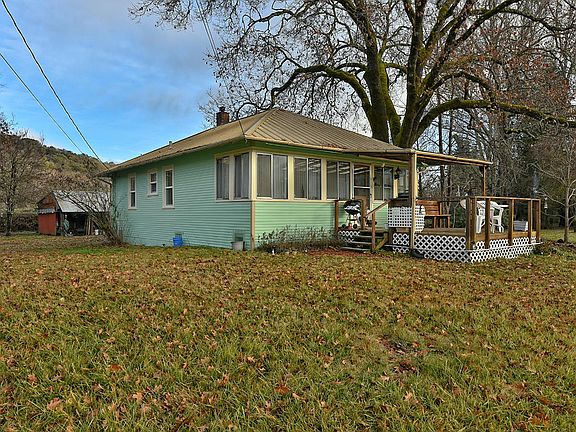 This Cute 2 bed, 1 bath, 852 sq ft home sits on just over an acre lot, has a 2 car detached garage, river frontage and irrigation. Enjoy country living off of your front deck with beautiful river and mountain views. This cozy home offers a sunroom/office, a nice sized living room with a wood stove and 2 bedrooms with a jack & jill bathroom. The kitchen is open and the skylight fills it with natural light. There is a separate laundry room with lots of storage, a sink and access to the basement. The enclosed back porch leads you to the two car garage and covered outdoor patio. A circular driveway makes parking easy and convenient. Included are several outbuildings, a cute one room shack, a large open wood/storage as well as a workshop. There is plenty of room for gardening with a fenced garden area and greenhouse which has irrigation from the Gold Hill Irrigation District.