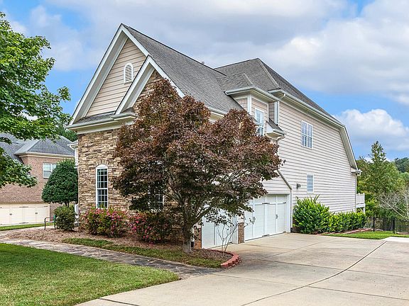 Beautiful home in Wrenn Meadow with serene pond views and a spacious 3-car side-entry garage. Enjoy outdoor living with a covered front porch, deck, stone walkway, covered lower stone patio, and fenced backyard. Inside, you'll find hardwood floors, high ceilings, and crown molding. The cabinets in the kitchen, owners bathroom, and hall bathroom are all newly painted. Enjoy cooking in the updated kitchen featuring new granite counters, stainless appliances, tile backsplash, walk-in pantry, and a bright breakfast area. Stay warm next to the fireplace in the family room that also features a wall of built-in's. The main floor owner's suite offers a double tray ceiling, deck access, two walk-in closets, and a luxury bath with a jetted tub and tiled shower. Also on the main level: guest bedroom, full bath, laundry room, and two-story foyer and sitting room. Upstairs includes a loft/office, 2 bedrooms, hall bath, media room, and bonus room. Close to Kraft YMCA, Publix, Knights Play Golf, and easy access to US-1 and The Triangle Expressway!