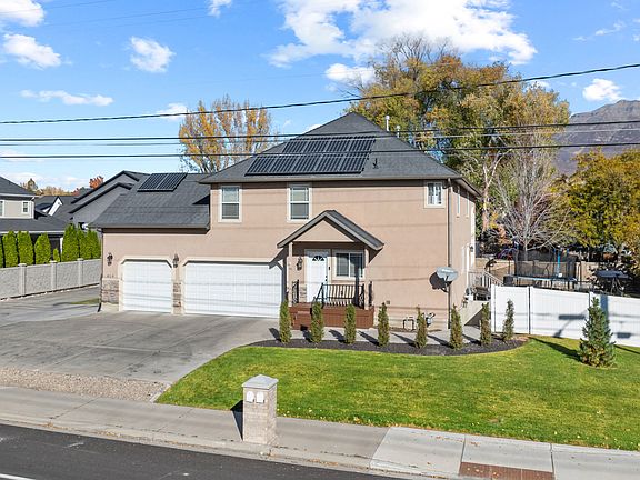 Welcome to this stunning home in the desirable Riverbottoms area of Provo. The open floor plan features vaulted ceilings, hardwood and travertine floors, and a bright kitchen with granite countertops, double ovens, a gas range, and French doors that open to a spacious patio and beautifully landscaped yard. The primary suite includes a luxurious bathroom with a separate tub and shower, a walk-in closet, and a bonus room that's perfect for a home office or quiet retreat. The fully finished basement includes a private mother-in-law apartment with its own entrance, full kitchen, and laundry. The apartment is currently rented for $1,600 per month with a lease through June 2026, providing excellent income potential or flexible living space for family. Large basement storage room! This home also features paid-off solar panels, offering energy efficiency and lower utility costs. With a three-car garage, mature trees, and a location close to schools, shopping, and outdoor recreation, this home offers comfort, convenience, and opportunity in one of Provo's most sought-after neighborhoods. Square feet as per County. Buyer and Buyer's Broker to verify all information including square footage and acreage.