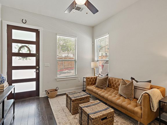 Upgraded corner 2bed/2bath duplex townhouse right in the heart of 78704. Built in 2018 with original owners occupying ever since. 1 car garage plus multiple guest parking spots included. 2 outdoor spaces: one off the upstairs living room, plus a 400 sq. foot deck on the lower level. Hardwood floors throughout. Corner unit that lives like a single family home. Custom upgraded walk-in closets, dual oven, and stainless steel appliances.