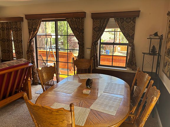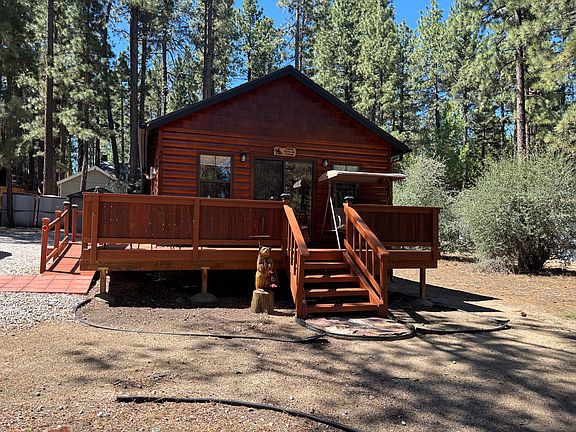 Welcome to this charming mountain cabin nestled on a spacious double lot surrounded by towering pines. This fully furnished 2-bedroom, 1.75-bath home offers the perfect blend of rustic charm and modern convenience.