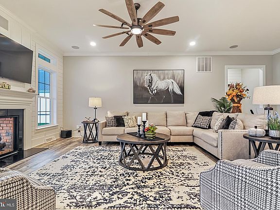 Welcome to 404 Wiggins Mill Rd, a stunning luxury single-family home in Townsend, DE, offering an impressive 4,431 square feet of living space. This detached residence boasts five spacious bedrooms and four and a half bathrooms, providing ample room for comfort and privacy. Step inside to discover elegant architectural elements, including crown moulding, wainscoting and high ceilings, complemented by sleek vinyl floors and recessed lighting throughout. The gourmet kitchen is a chef's dream, featuring stainless steel appliances, a gas stove, wall oven, range hood, and a large kitchen island with an oversized pantry. The open layout seamlessly connects the kitchen to the living areas, making it perfect for entertaining. Relax in the cozy living room with a working fireplace, or retreat to the primary ensuite, which offers a soaking tub with separate vanities. Additional features include a home office, screened in back porch, and finished basement, ensuring versatile spaces for work and play. The home features a finished basement perfect for entertaining, while still providing ample storage space. Enjoy the convenience of a laundry room with washer/dryer hookup and the practicality of an attached garage. Outdoor living is enhanced by a charming full front porch, perfect for unwinding and enjoying the serene surroundings. With forced air heating and air conditioning, this home ensures year-round comfort. Experience luxury living at its finest in this exquisite Townsend residence. Pictures are of a similar model.