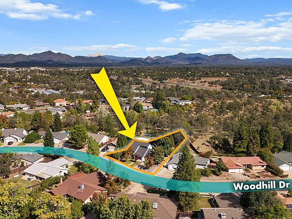 Welcome to this incredible two-story 3 bed, 2 bath ~1528 sq. ft. home plus a detached ~400 sq. ft. studio guest cottage with full bathroom, boasting RV/boat parking, and sitting on a generous 0.32-acre lot located in the highly sought-after Woodcliff Estates community in North Hilltop Redding, this property offers an exceptional blend of flexible living and practical amenities within a truly great, established, no-HOA neighborhood. As you step inside, you're immediately greeted by the bright, spacious living room's tall vaulted ceilings highlighted by a rustic exposed wood beam accent, setting a welcoming and distinctive tone. The main residence spans ~1,528 sq. ft., featuring wood laminate flooring throughout the main living areas. The open-concept kitchen and dining area includes a practical breakfast bar, and a slider that leads out to a large wood patio area, which opens up to the truly massive, fully fenced backyard. This yard offers ample space and is prime for adding a future pool! The lot backs directly onto a serene greenbelt with mature trees and stunning mountain views. The main level is designed for convenience, featuring a downstairs bedroom and full bath perfect for guests, an in-home office, or multi-generational living. Upstairs, you'll find two generously sized bedrooms with vaulted ceilings and a shared hall bath, and nice mountain views from the bedroom window. Adding immense value and flexibility is the detached approximately 400 sq. ft. studio guest cottage/ADU, complete with its own full bath, ideal for generating rental income, hosting guests, or use as a separate professional workspace. For vehicle storage and recreation, the property provides an attached 320 sq. ft. 2-car garage plus a critical, dedicated separate driveway with a gate for secure RV and boat parking. This unique Redding home is a must-see for buyers seeking acreage, income potential, and extensive parking in a coveted neighborhood close to local shopping, dining, and amenities on Hilltop Drive.