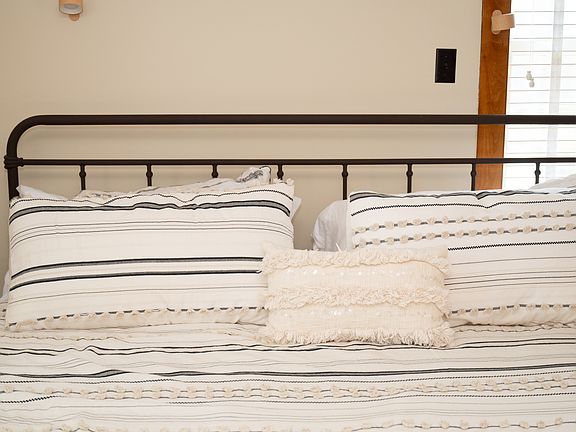 Electric fireplaceFully furnished kitchenLaundry areaSpacious primary bedroomTwo additional twin bedsGiant walk-in closetQueen sized bed