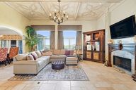Gas fireplaceArchitectural eleganceGrand architectural detailsScreened-in rear deckSoaring spacesHand-painted ceilingOpen-air deck