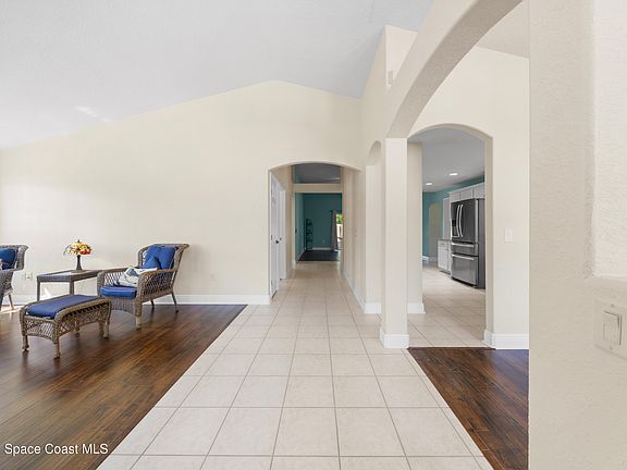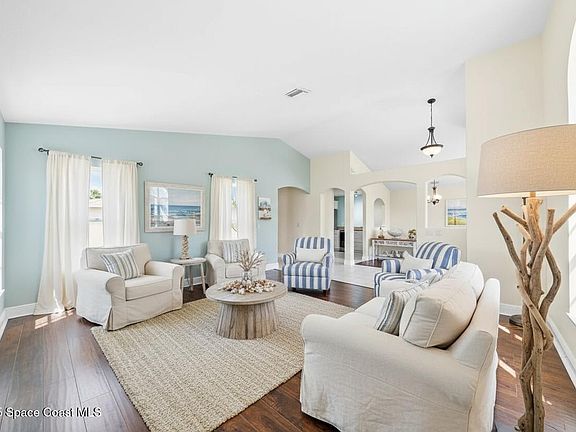Experience refined Florida living in this beautifully maintained 4-bedroom, 2-bath residence located near the King Center, beaches, shopping, and Lake Washington recreation. The inviting split floor plan offers both comfort and sophistication with a formal dining room, private living area, and open family room leading to a screened lanai and lush, fully fenced backyard with deep-well irrigation. The chef's kitchen is a showpiece, featuring granite countertops, premium stainless steel appliances, and a custom wine refrigerator. The serene primary suite includes dual vanities, a makeup area, walk-in closet, and a relaxing garden tub. Enjoy the convenience of a spacious laundry room with sink, plus a three-car garage equipped with a mini-split A/C, insulated doors, and epoxy flooring. Additional features include accordion hurricane shutters, gutters, 2022 A/C, 2017 roof, mature landscaping. A home where comfort meets quality.