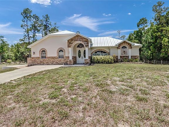 Welcome to your dream home! This beautifully maintained and unique home offers 3-bedrooms and 2-baths while the garage has been converted into a fantastic mother-in-law suite or apartment! This residence is situated on a spacious 1.64-acre lot in the desirable Golden Gate East corridor. With a bright and neutral interior, this home boasts wood-like luxury vinyl flooring in the main living areas and elegant crown molding throughout. Unique barn doors add a touch of rustic charm, making this home truly one-of-a-kind. Step outside to your private oasis featuring a sparkling pool and spa, ideal for relaxing or entertaining. A new 5v metal roof was replaced just last year which includes a 5 year warranty, providing peace of mind for years to come. The property is fully fenced and gated, ensuring privacy and security. The drive-around driveway adds convenience, while the open storage structure offers ample space for RVs, boats, or running your business. Additionally, a charming chicken coop adds a touch of country living. Don't miss the opportunity to own this exceptional property with endless possibilities!