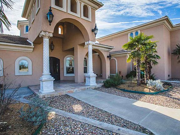 Stunning Stucco with a Mediterranean Flair! From the moment you enter the Circle Drive you know this home is special! Mature Landscaping, Palm Trees, Gas Light Fixtures and Original Stucco welcome you to the Custom Wrought Iron Front Doors into an expansive Gathering Room. Marble Floors, Huge Marble Columns encase an intimate Gathering Area with an enormous 3 Tier Crystal Chandelier and a glimpse of the Outdoor Living through a Double Glass Fireplace. This area opens to the Butlers Pantry with Exotic Granite Eating Bar for 5, many cabinets for storage, Wine Closet and a large Breakfast Dining Area, again with a beautiful Crystal Chandelier, and a wall of built in China Storage. Crown Molding and Over Sized Baseboards are throughout the home. The Great Room consists of Kitchen Area, Formal Dining Area and a Family Living Area which overlook the Outdoor Living and Pool. The Kitchen features an Octagon Shaped 8' Island covered by a custom Chandelier, Exotic Granite Surface and Copper Prep Sink. Banked by Many Solid Wood Cabinets, Smooth Cook Top, Double Side Stainless Freezer/Refrigerator, Warmer Oven, Double Copper Farm Sink, and Eating Bar for 5. There is an accessible Walk in Pantry, 1/2 Bath and Utility/Safe Room which makes this a natural gathering place in the home. The Kitchen looks over the Formal Dining Area and expansive Family Living area. Marble floors continue and lead to a wonder 3/4 Bath for home and pool use. Continue to Club Room featuring various activity areas for games, watching TV, Pool Table and a Wet Bar. Custom Built in Cabinetry for displaying football team memorabilia, trophies and school sports awards. Popcorn and a Coke and you will be entertained for the evening. Special Lighting and Plantation Shutters for privacy. Near the Club Room is the Gym/Workout Room. Cushioned floors and lots of room for equipment. There are 3 Bedrooms on the West Wing of the home. All Bedrooms have Walk-in Closets with Built Ins and access to Full Bath. Exotic Granite Vanities, Upgrade Bath Fixtures and Plantation Shutters enhance every Bedroom Suite. The Master Suite is on the opposite side of the home. Arched Doorways, Warm Wood Floors, Tray ceiling, Marble Floors, access to outdoor living and Unbelievable Closet areas are a part of this luxury lifestyle. The Bath features Triple Mirrored, Exotic Granite Matching Vanities with Copper Faucets, Walk in Shower with duel Shower Heads and Rain Fall Shower. Elevated Whirlpool Tub accented with Chandelier and 2 Story Cupola with clear windows for natural light. UPSTAIRS: The easy stair access has landing walk in Storage Room. (Under the stairs is a perfect Storage Area for toys). Upstairs is where you will find the Media Room, Library and Guest Suite. The Media Room has Surround Sound, Seating for 8 in comfort leather Chairs, Wood Look Tile flooring and a "nook" for theater "munchies". The Study/Office has built in Desk and Lots of Bookshelves. There are 2 Storage Rooms attached. The large Guest Suite has a wall of Closet Storage, a Reading Nook, and access to Full Bath with wonderful appointments. The Storage throughout this home is unbelievable. Its Condition is impeccable, the timeless design is certainly not cookie-cutter and it has every amenity one could desire. Exotic Granite in each Bathroom, Kitchen and Eating Bars, which there are 3 Total, Marble and Tile Flooring throughout. Crown Molding and over sized Base Boards illustrate its Custom design features. Plantation Shutters on every window. The Backyard features a 2000 s/f covered Patio with Out Door Kitchen. Cooker, Smoker and Refrigerator will please the Chef! Many lounging areas with a view of the Glass See Through Fireplace. In Ground Salt Water Pool with Hot Tub and Waterfall will make any party a success. The 4 Car Drive Through Garage is fabulous!! There is access from Rolling Hills and Prairie View and will accommodate more than automobiles. VISUAL