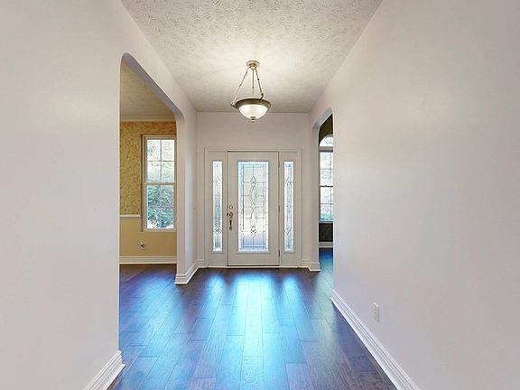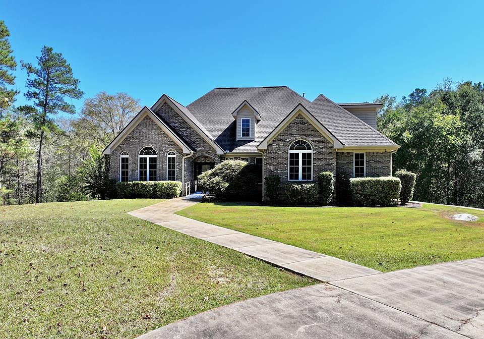 Secluded within a private community, this 3-story brick estate rests on 6.79 acres, offering 5,344 sq. ft. of living space, an inground saltwater pool, and unmatched privacy. Step inside to a welcoming foyer flanked by a front vaulted den/office and separate dining room, leading to a 2-story living room with a gas fireplace and access to a vaulted, covered deck overlooking the pool and spacious backyard. The open-concept eat-in kitchen features Corian countertops, stainless steel appliances, a raised breakfast bar. Wood and tile floors run throughout the main level for a cohesive look. The main-level primary suite boasts a tray ceiling, and private porch access. The ensuite includes a jetted tub, tile shower, double vanity, and walk-in closet. A split floorplan provides a main-level guest suite with its own walk-in closet and full bath. The main level also includes a laundry room and 2-car garage. Upstairs, find two bedrooms with walk-in closets and Jack-and-Jill bath, plus flex room and walk-in attic storage. The walk-out basement expands the living space with a family room with wood-burning fireplace; a rough-plumbed kitchen area; fifth bedroom with ensuite bath and XL walk-in closet; plus, a media room; hobby/home school room; and storage room. Step out to the screened porch and fenced pool area; perfect for outdoor living. The main level also includes a laundry room and 2-car garage. This home is a true family retreat designed for everyday living and exceptional gatherings.